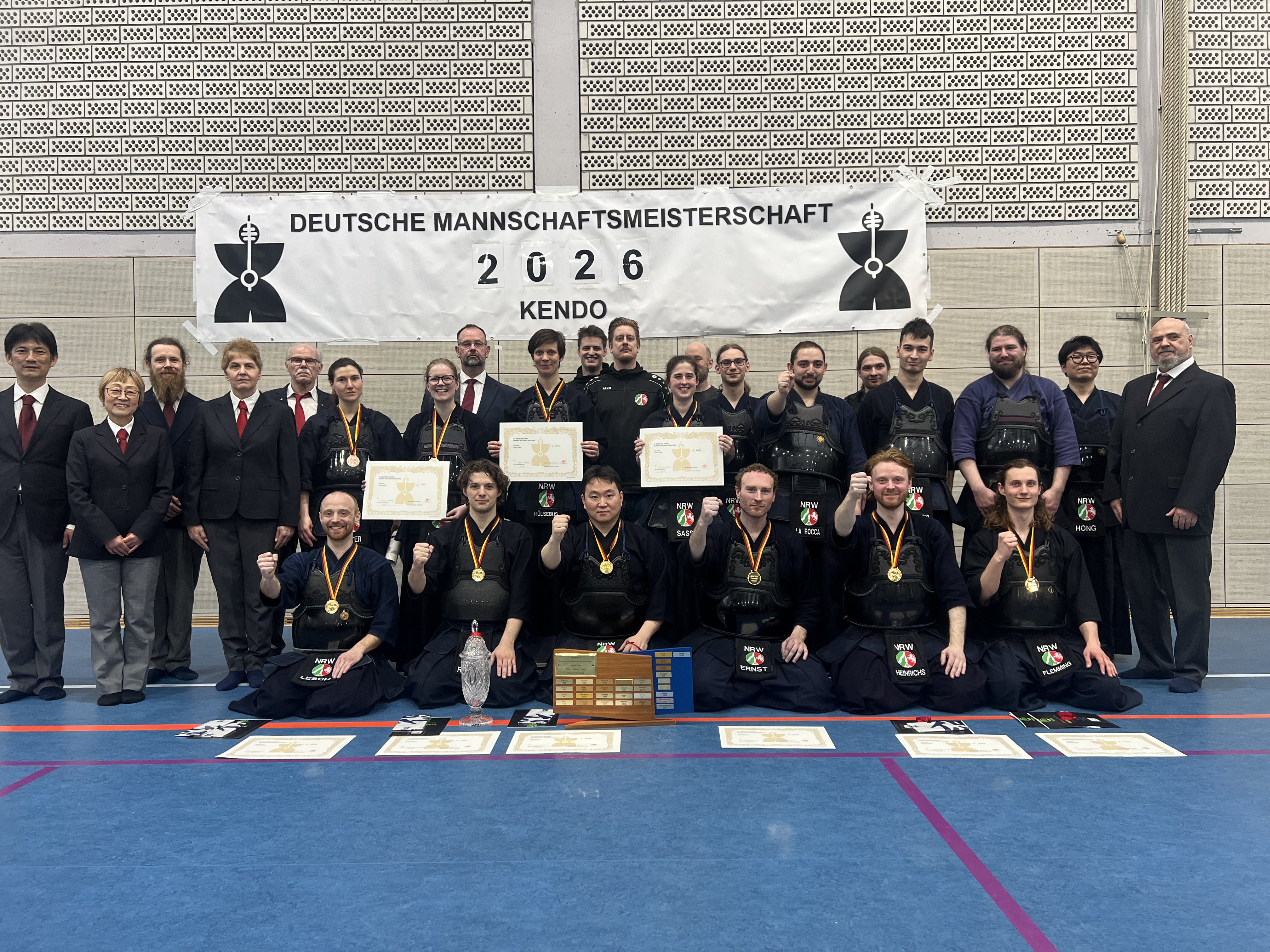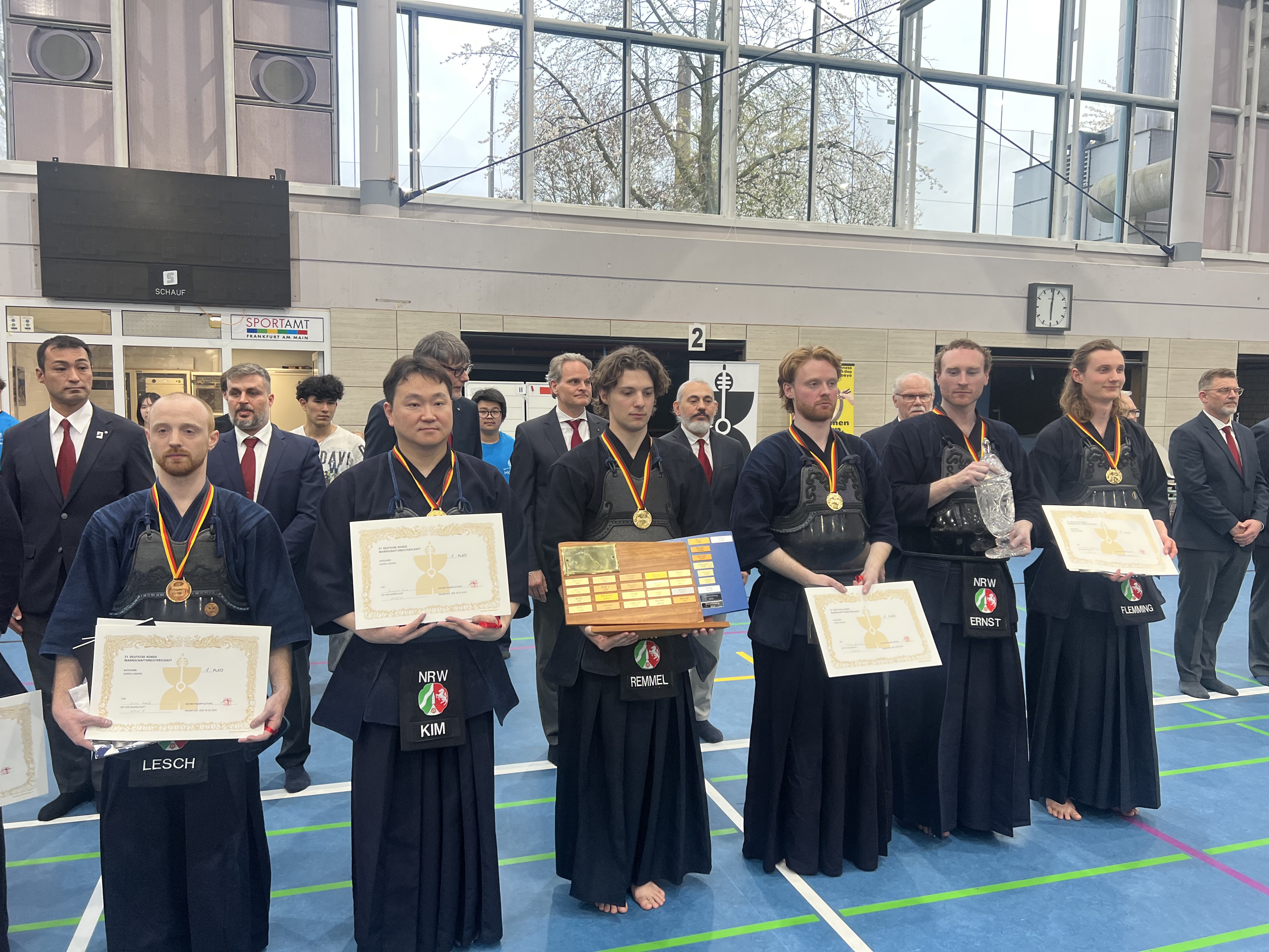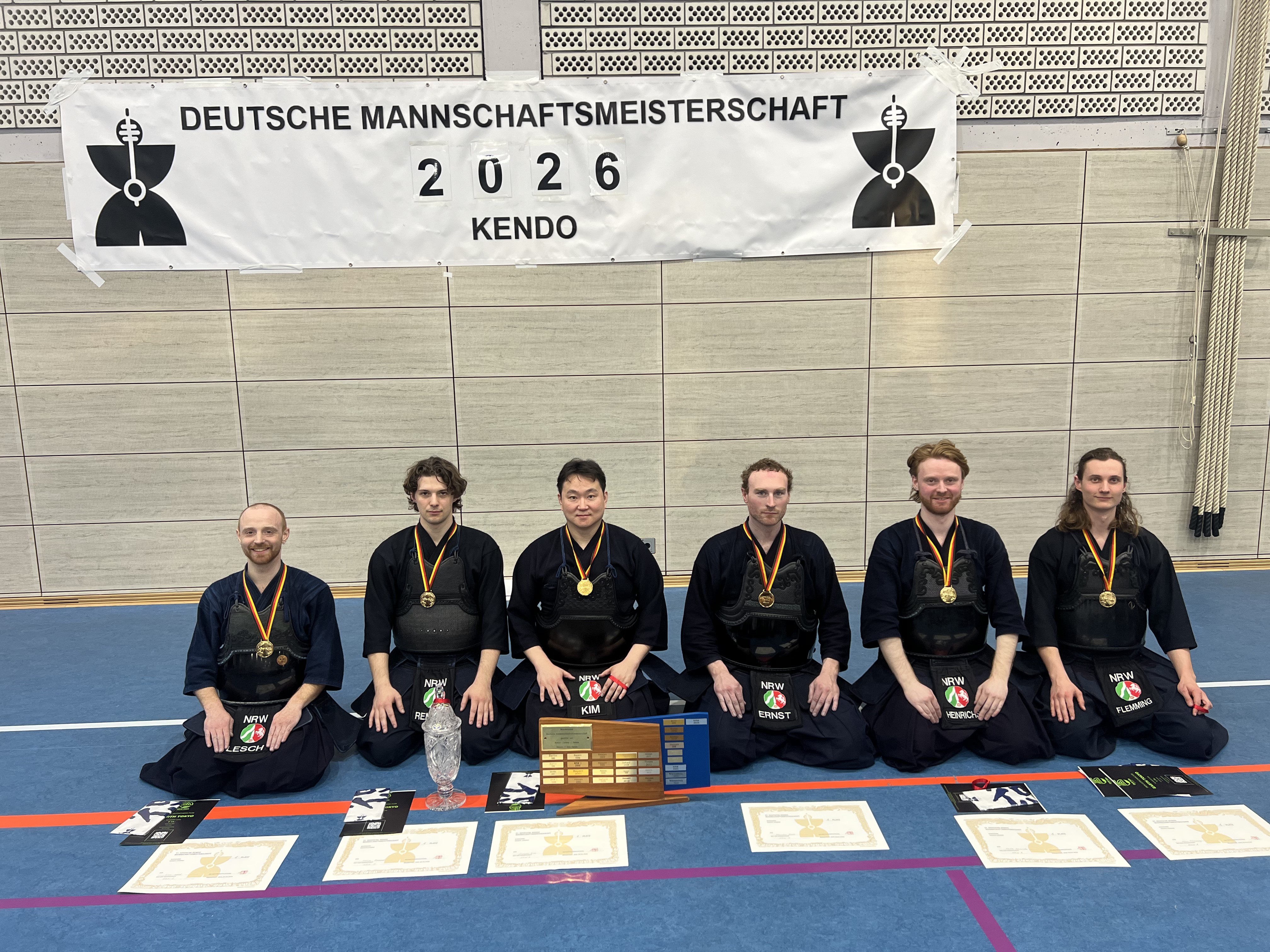Die Herrenmannschaft mit Moritz Remmel, Luca Flemming, Max Ernst (DJSG), Sungjong Kim (DJSG), Liam Lesch (JCDKC) und Malte Heinrichs (DJSG) konnten erfolgreich ihren Titel verteidigen.
