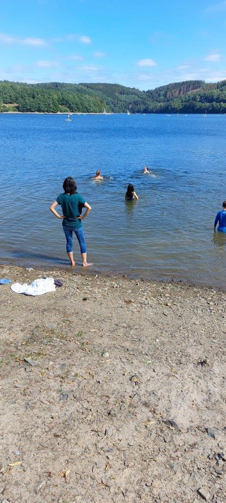 Auf einmal kamen 3 unserer jungen Damen auf die Idee ins Wasser zu gehen und sich abzukühlen, was ihnen auch sichtlich Freude gemacht hat wie man anhand der Bilder sehen kann. Nach all den Beschränkungen in den letzten Monaten konnte man die Seele baumeln lassen und sich vor dem Beginn des neuen Schuljahres richtig entspannen. Ich hoffe, daß wir in Zukunft etwas ähnliches wiederholen können.