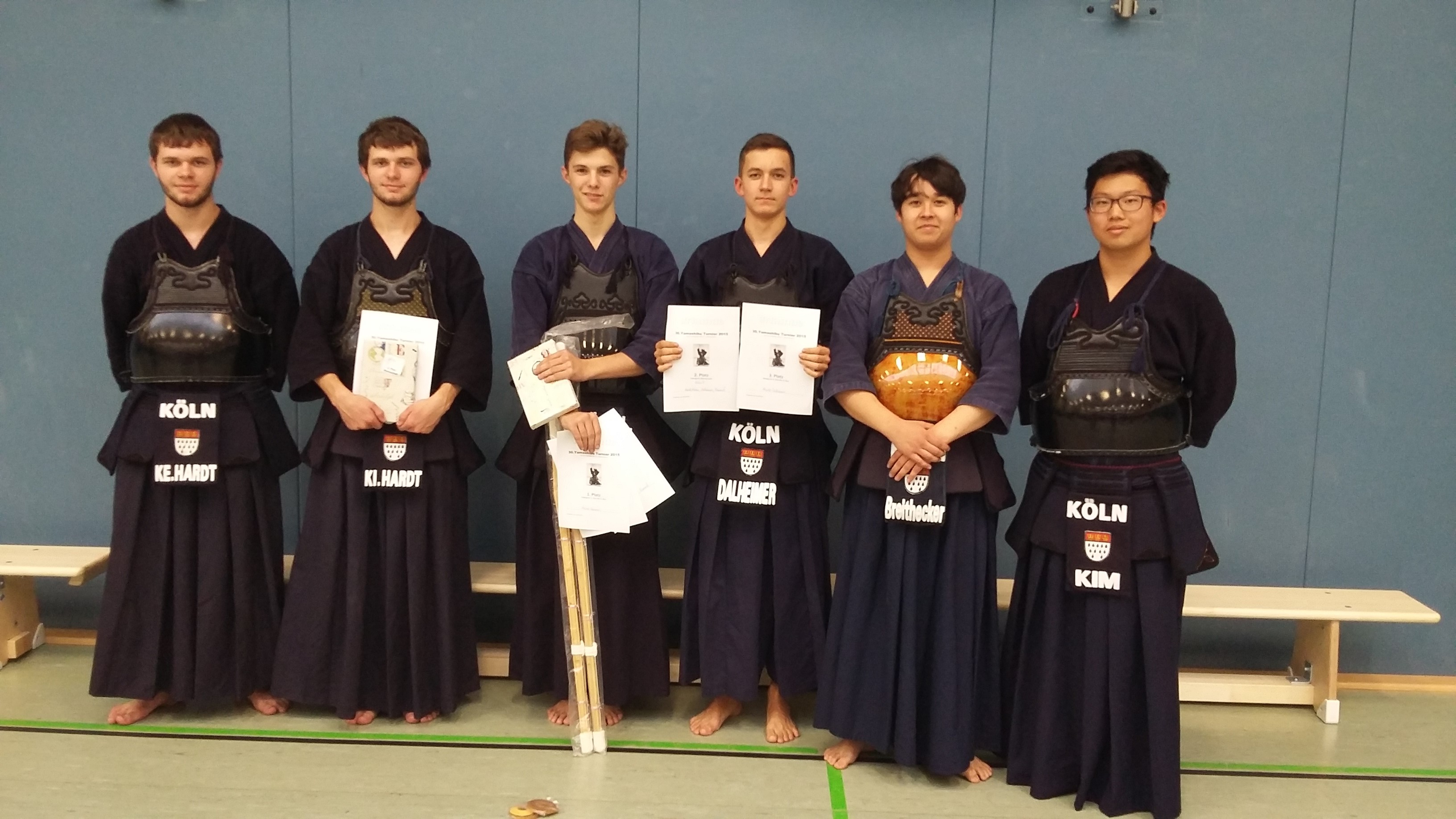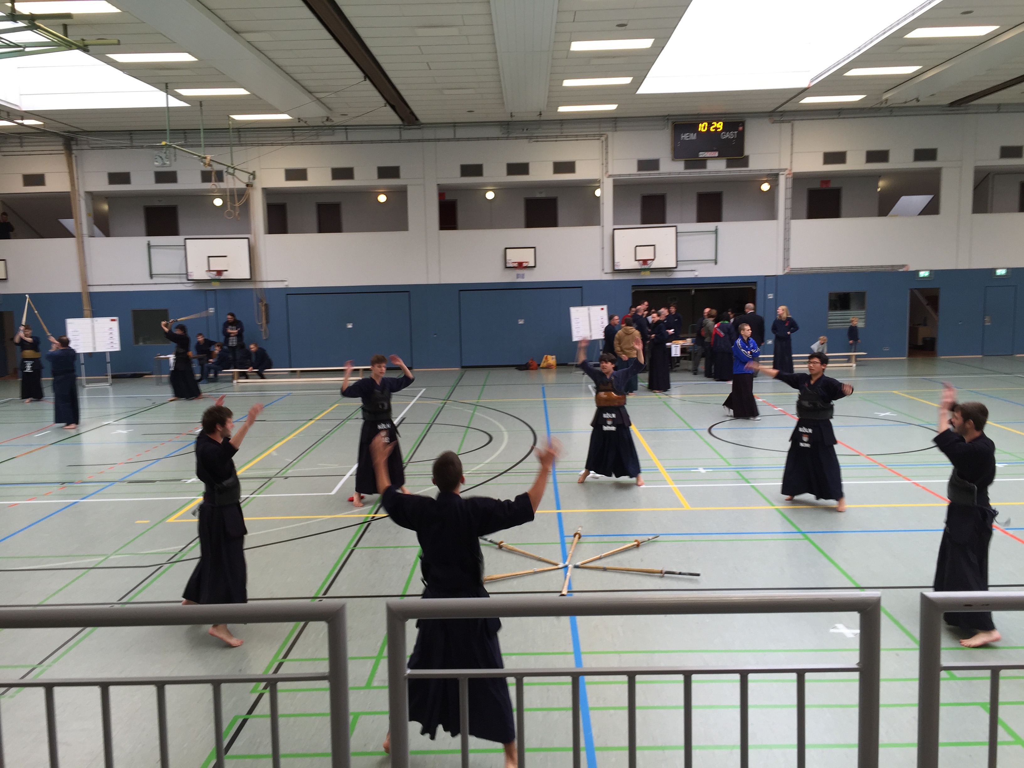 Wir waren mit 2 Mannschaften, sprich 6 Kendoka vertreten. Alle haben hervorragend gekämpft. Natürlich kommen nicht alle ins Finale, aber das Gesamtergebnis kann sich sehen lassen. Auch diejenigen die das erste Mal bei einem Turnier gekämpft haben, es war ja ein Erwachsenenturnier, sind alle aus ihren Pools weitergekommen. Erschwerend kam dazu, daß durch unglückliche Auslosung direkt die eigenen Vereinsmitglieder gegeneinander kämpfen mußten.